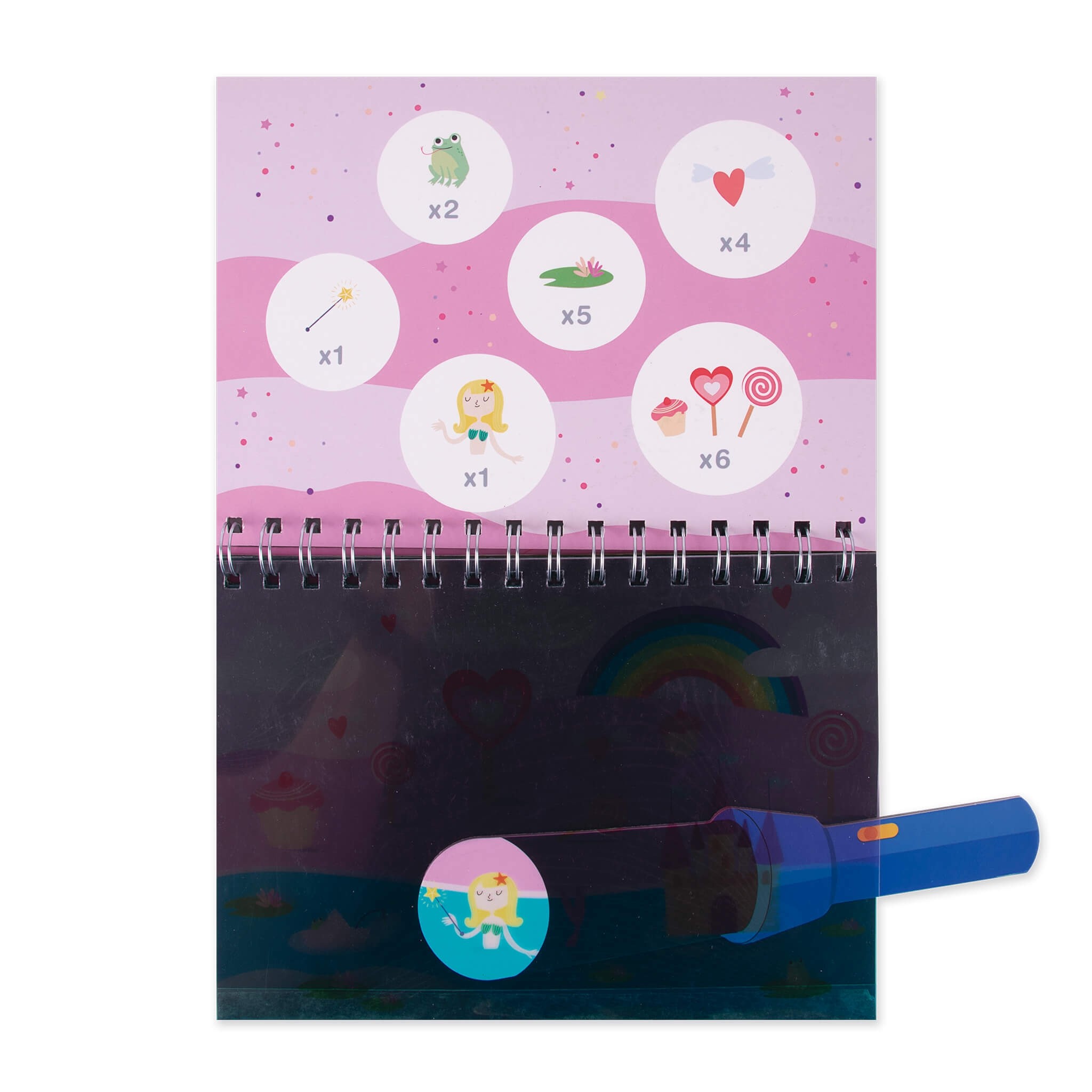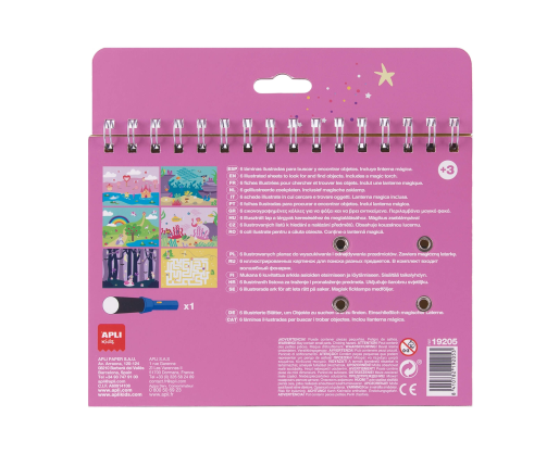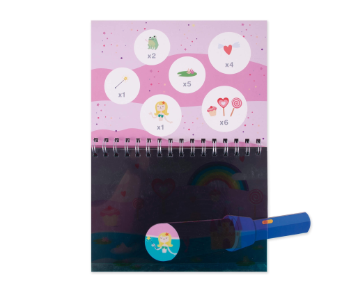 Knygelė, susidedanti iš 6 dailiai iliustruotų lapų, kuriuose galima ieškoti objektus su stebuklingu kartoniniu žibintuvėliu. Kad smagus užsiėmimas būtų visada po ranka imkite knygelę keliaudami kelionėje, į svečius ar parką. Žaisdamas vaikas lavins pastabumą, smulkiąją motoriką ir kūrybingumą.