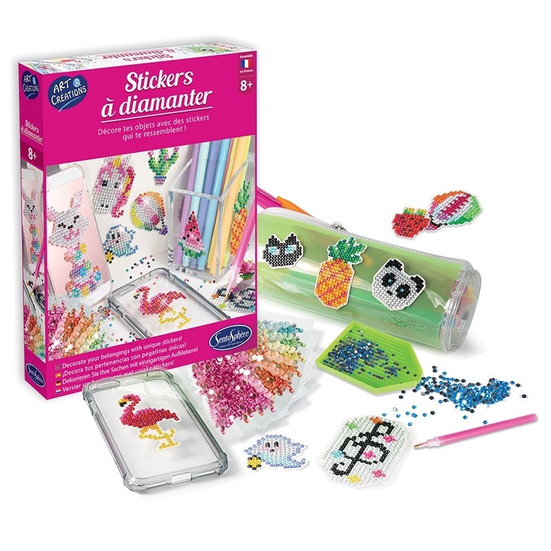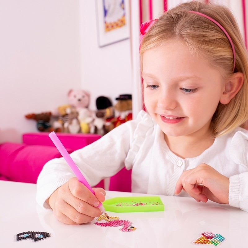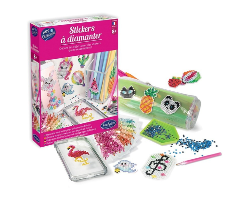Sukurkite daugiau nei 15 akinančių lipdukų padengdami gražius raštų šablonus tūkstančiais spalvotų deimančiukų. Baigę kūrybinį procesą šiais lipdukais galite papuošti bet kokį paviršių - nuo telefono ir pieštukų dėklų iki sąsiuvinių ir pieštukinių.Viduje: 1 įrankis, skirtas paimti deimančiukus, 1 mažas padėklas patogiai susirūšiuoti deimančiukus, 1 gelio lakštas, skirtas padaryti įrankį lipnų deimančiukams paimti, 1 buteliukas lako, 1 teptukas, tūkstančiai skirtingų spalvų mini deimančiukų ir kita.
