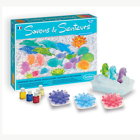 Naudodami šiame rinkinyje esantį skaidrų gliceriną, turėsite galimybę pagaminti nuostabius, aukštos kokybės muilus. Medžiaga muilo gamybai lengvai tirpsta, tad ją lengva išlydyti mikrobangų krosnelėje. Į šį skystą pagrindą vaikas gali įmaišyti pasirinktą kiekį įvairių kvapų bei spalvų. Muilas atvėsta per kelias minutes ir įgauna širdelės, gėlės, jūros kriauklytės arba žuvytės formą. Šie muilai yra tinkami ir gali būti saugiai naudojami net pačiai jautriausiai odai.Viduje: • 450 g muilo • 10 muilui formuoti skirtų formelių • 3 spalvų kosmetiniai dažai • 2 kvapai • 5 pipetės • 1 instrukcijų rinkinys