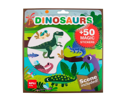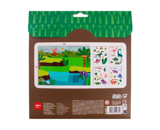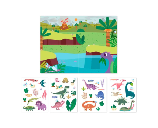 Keliaukite į dinozaurų pasaulį su „Lipdukų žaidimu – Dinozaurai“! Sukurkite savo priešistorinę aplinką, dėliodami nuimamus lipdukus ant dekoravimo plakato su dinozaurų tema.