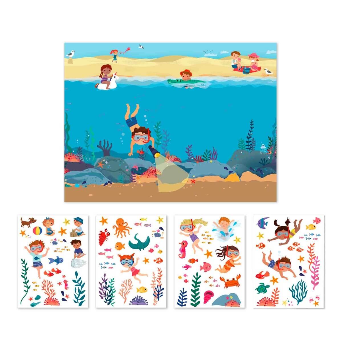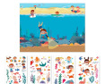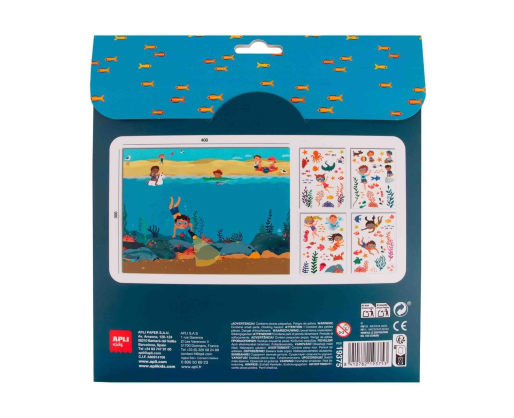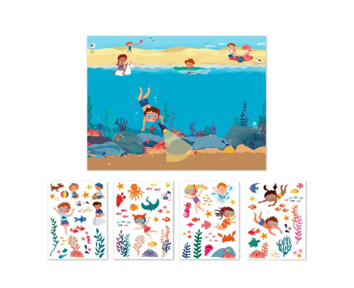 Kaip žaisti: Išskleiskite plakatą ir pasirinkite norimą lipduką. Sukurkite povandeninę pasaulį! Klijuokite žuvis, koralus ir kitus jūros gyventojus. Eksperimentuokite su lipdukų vieta – jie lengvai perklijuojami ir gali būti naudojami pakartotinai. Atraskite vandenyno paslaptis! Vaikai gali mokytis apie jūros gyvūnus ir jų gyvenamąją aplinką žaidimo metu.