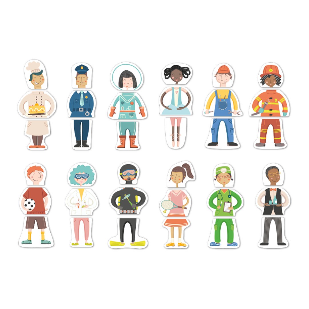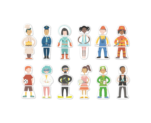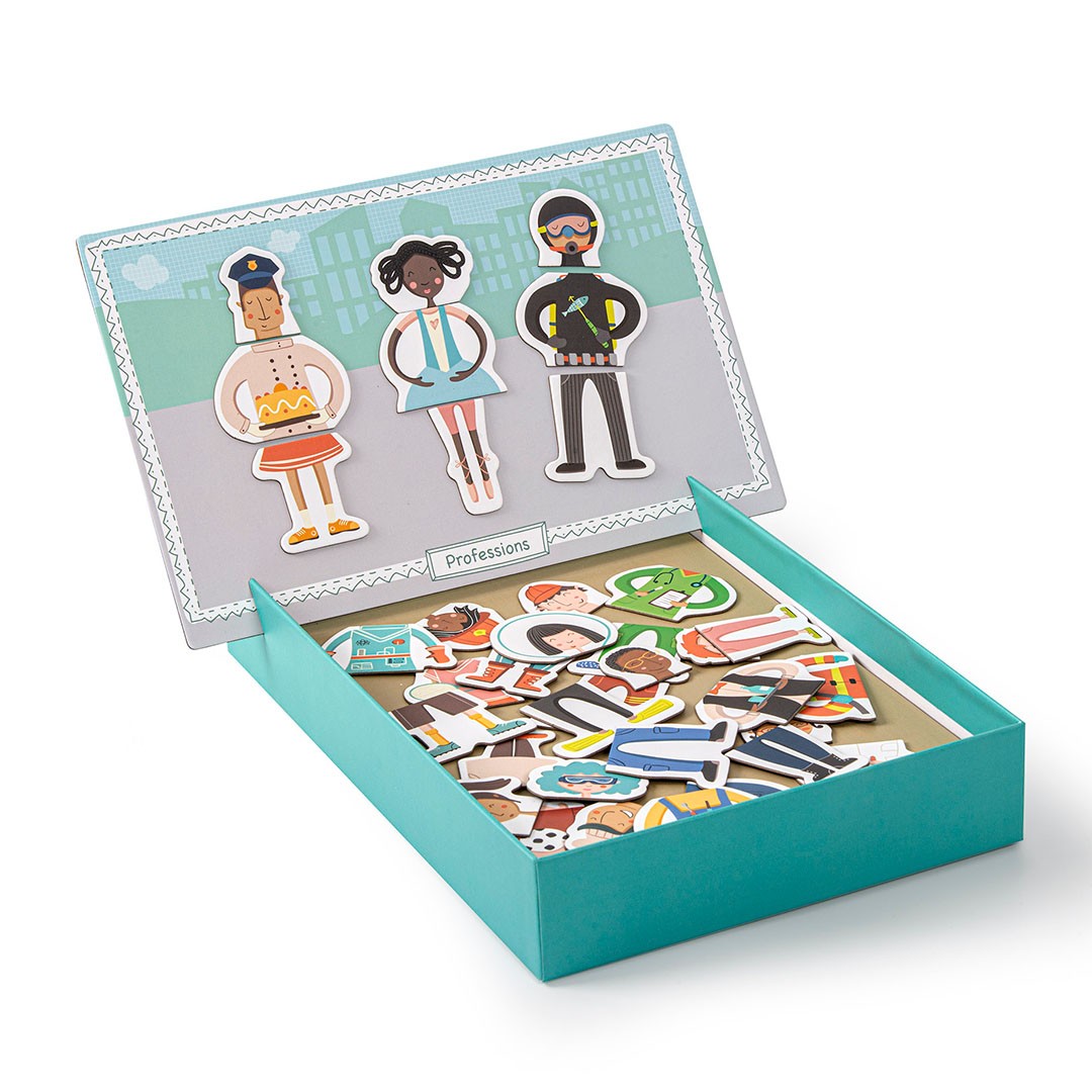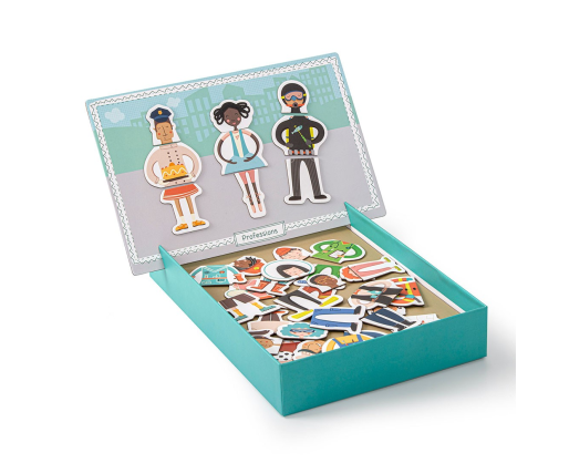 Kaip žaisti: Dėliodami skirtingus, įvairias profesijas atitinkančių rūbų ir aksesuarų magnetukus, susipažinkite su profesijų bei darbų įvairove. Gal taip atrasite net savo pašaukimą? ;)