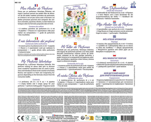 Šis prancūzų parfumerės Véronique Debroise sukurtas rinkinys suteikia vaikams galimybę eksperimentuoti su 6 kvapiųjų medžiagų bazėmis ir maišyti kvapus, kad būtų sukurtos unikalios eaux de toilette ar net tikri kvepalai su rytietiškais, gėlių, gaiviais ar vaisiniais akcentais.