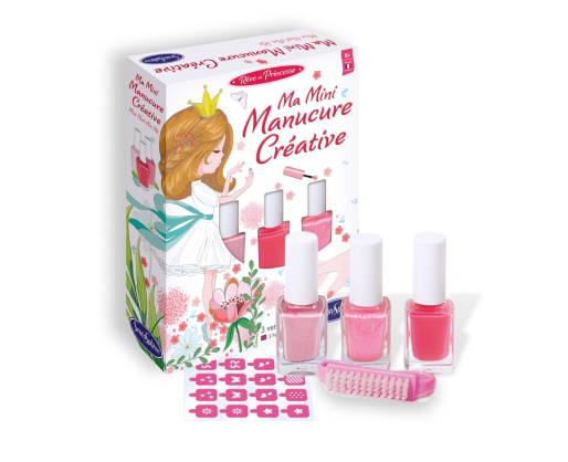 Rinkinį sudaro 3 lengvai nuimami nagų lakai, šepetėlis ir dekoratyviniai trafaretai, kurie padeda kurti spalvingus ir kūrybiškus nagų dizainus. Visi rinkinį sudarantys produktai yra saugūs vaikų odai, pagaminti pagal žaislų ir kosmetikos standartus.