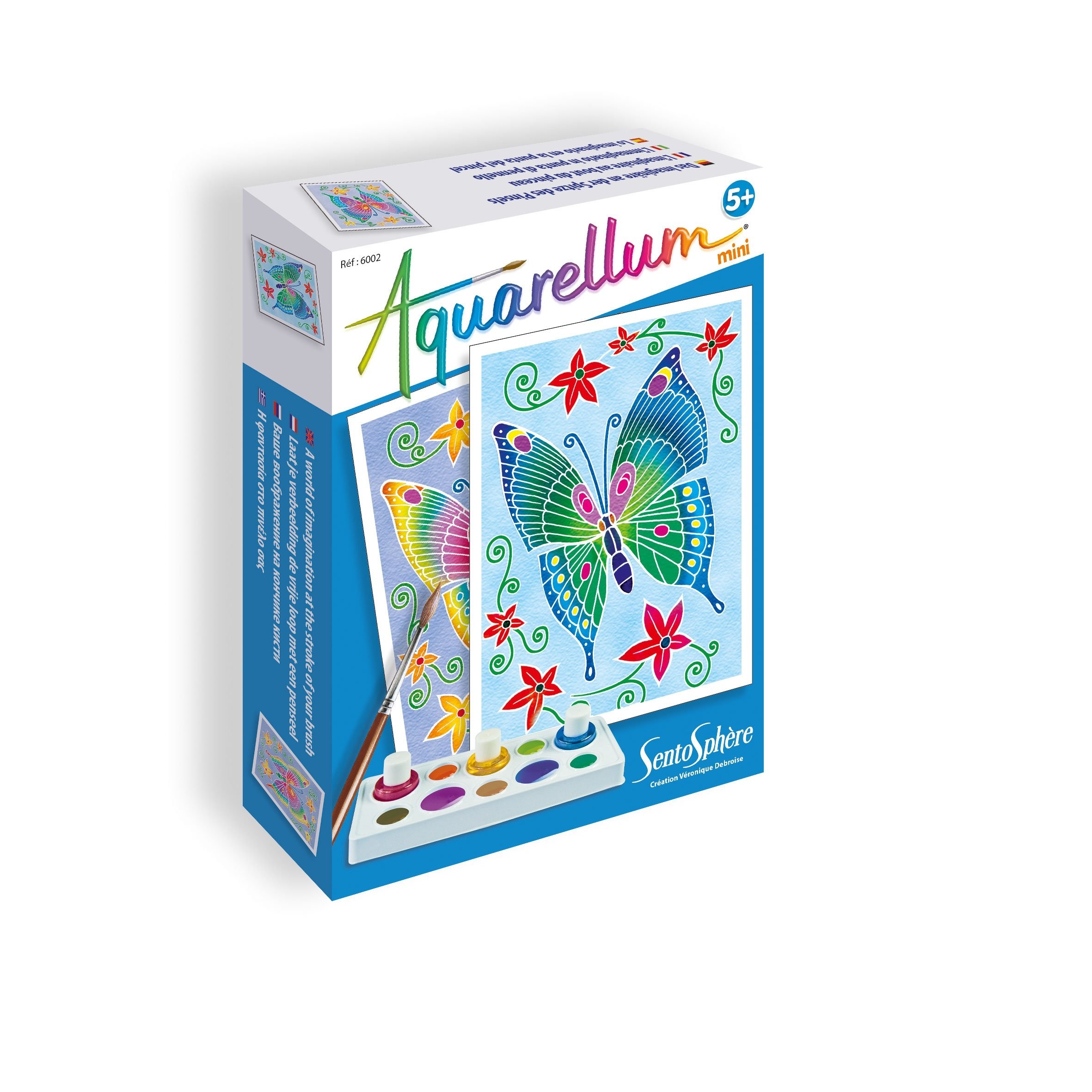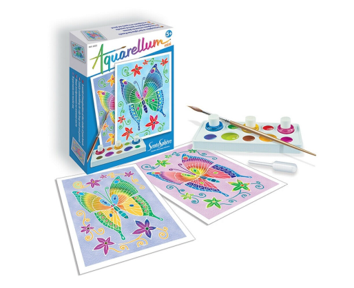 Mini akvarelės linija sukurta siekiant pristatyti žinomą tapymo techniką, kai piešinio linijos neleidžia susilieti spalvoms. Naudojant tris, tarpusavyje maišomas spalvas, galima sukurti labai plačią spalvų gamą, kuri padės nutapyti nuostabių paveikslų. Du trafaretai pažadins kūrybiškumą ir atvers duris į spalvų pasaulį.