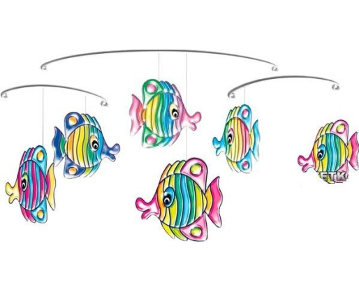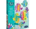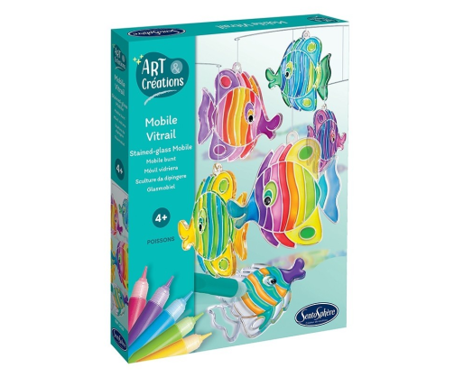 Nusipieškite savo svajonių žuveles. Pasigaminkite linksmą, plaukiojančių žuvelių karuselę! Išrinkite gražiausias spalvas ir jomis papuoškite žuveles. Juk taip smagu žaisti spalvomis kartu su dailiomis žuvytėmis.Viduje: Rinkinyje rasite 8 permatomas žuvelių formas, 10 skirtingų spalvų, 4 metalinius lankelius ir tvirto valo.
