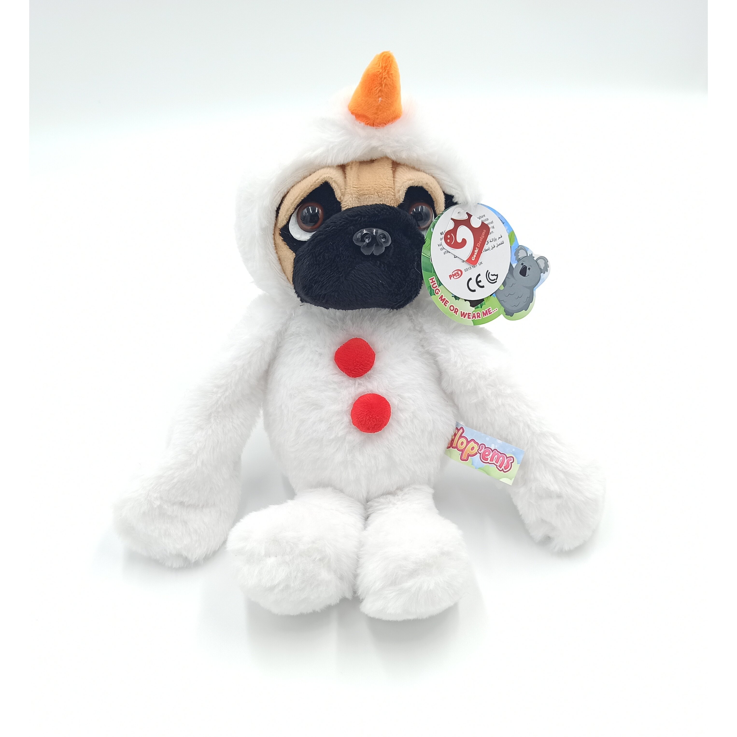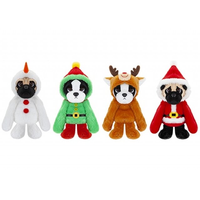 Šie mopsai pasipuošė Kalėdoms. Jų kojos ir rankos pripildytos rutuliukų. Rankos ilgos, todėl galima nešiot ant peties.