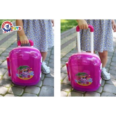 Žaislinis lagaminas „TechnoK“ yra įdomus, funkcionalus ir labai panašus į tikrą „suaugusiųjų“ lagaminą. Jis pagamintas iš patvaraus ir aukštos kokybės plastiko. Ryškiai mėlyna lagamino spalva ir originalus lipdukas tikrai patrauks mažylio dėmesį.