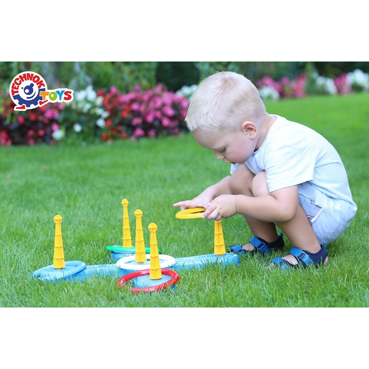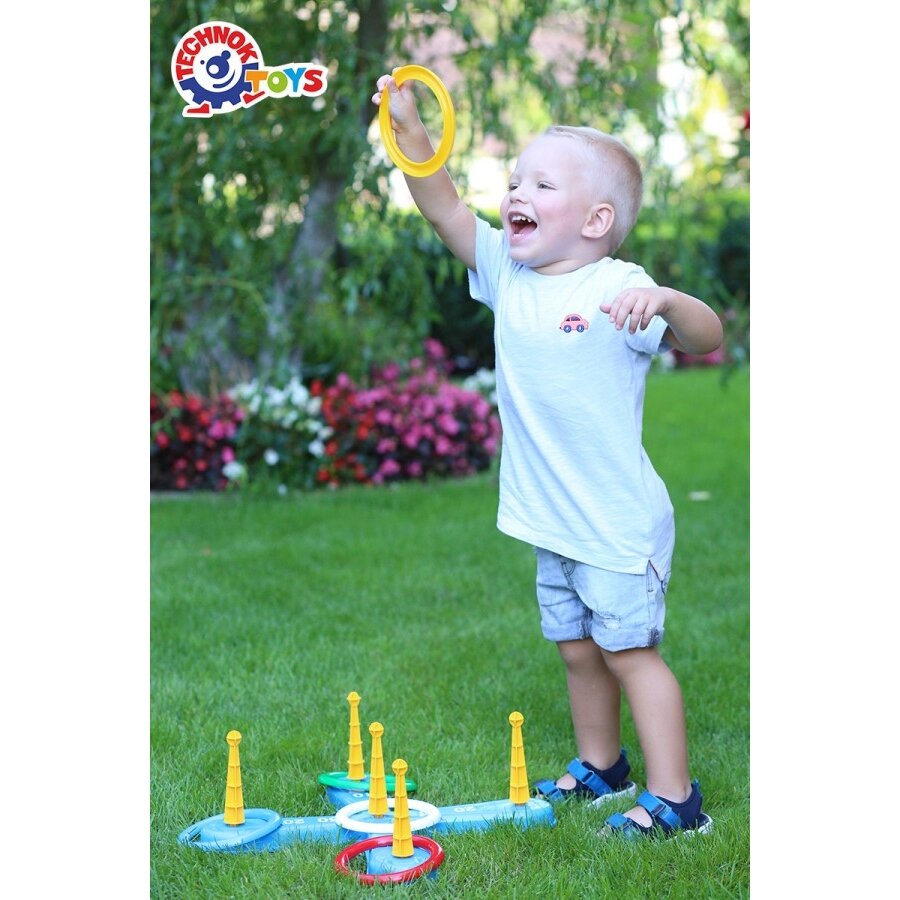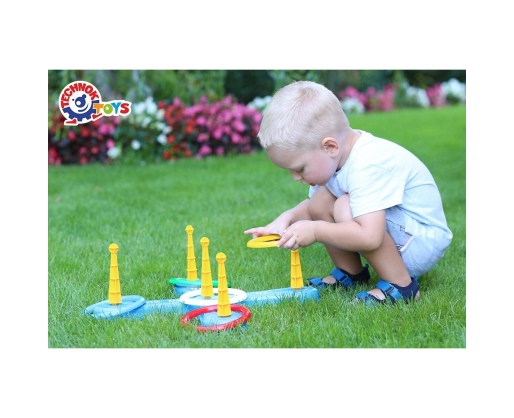 Rinkinį sudaro: iš dviejų dalių pagamintas kryžiaus formos pagrindas, 5 strypeliai ir 5 žiedai.