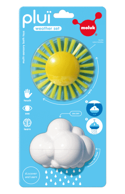 Po lietaus visada pasirodo saulė! Populiarusis Plui debesėlis ir Sunny šepetėlis yra tiesiog tobulas derinys. Kartu jie praturtina maudynių laiką ir tampa puikiais pagalbininkais norint mažyliui paaiškinti vandens ciklą. Plui debesėlis ir Plui brush sunny šepetėlis - tai unikalūs edukaciniai vonios žaislai, žadinantys vaizduotę bei pojūčius. Debesėlio išmatavimai: 9,2x7,4 cm. Šepetėlio diametras: 9 cm.