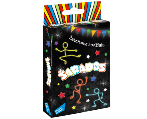 Mini stalo žaidimas ŠARADOS yra linksmas žaidimas, kuris patiks ir vaikams, ir suaugusiems. Žaidimo tikslas paprastas – pasitelkus sinonimus paaiškinti kortelėje parašytą žodį taip, kad likusieji žaidėjai jį atspėtų. Žaisti galima tiek didelėje draugijoje, tiek dviese. Žaidėjų skaičius: 2 ir daugiau. Žaidimo trukmė: 15 min. 30 kortelių.