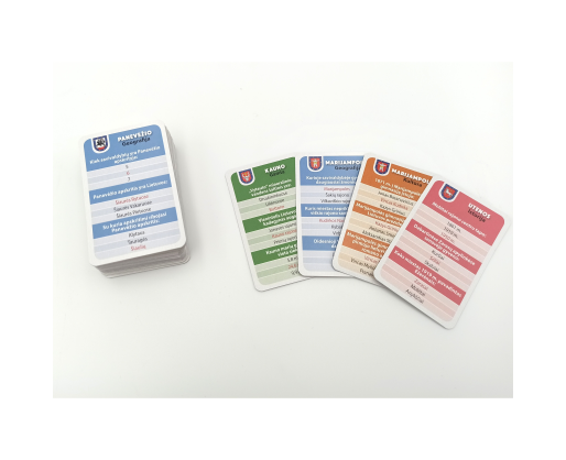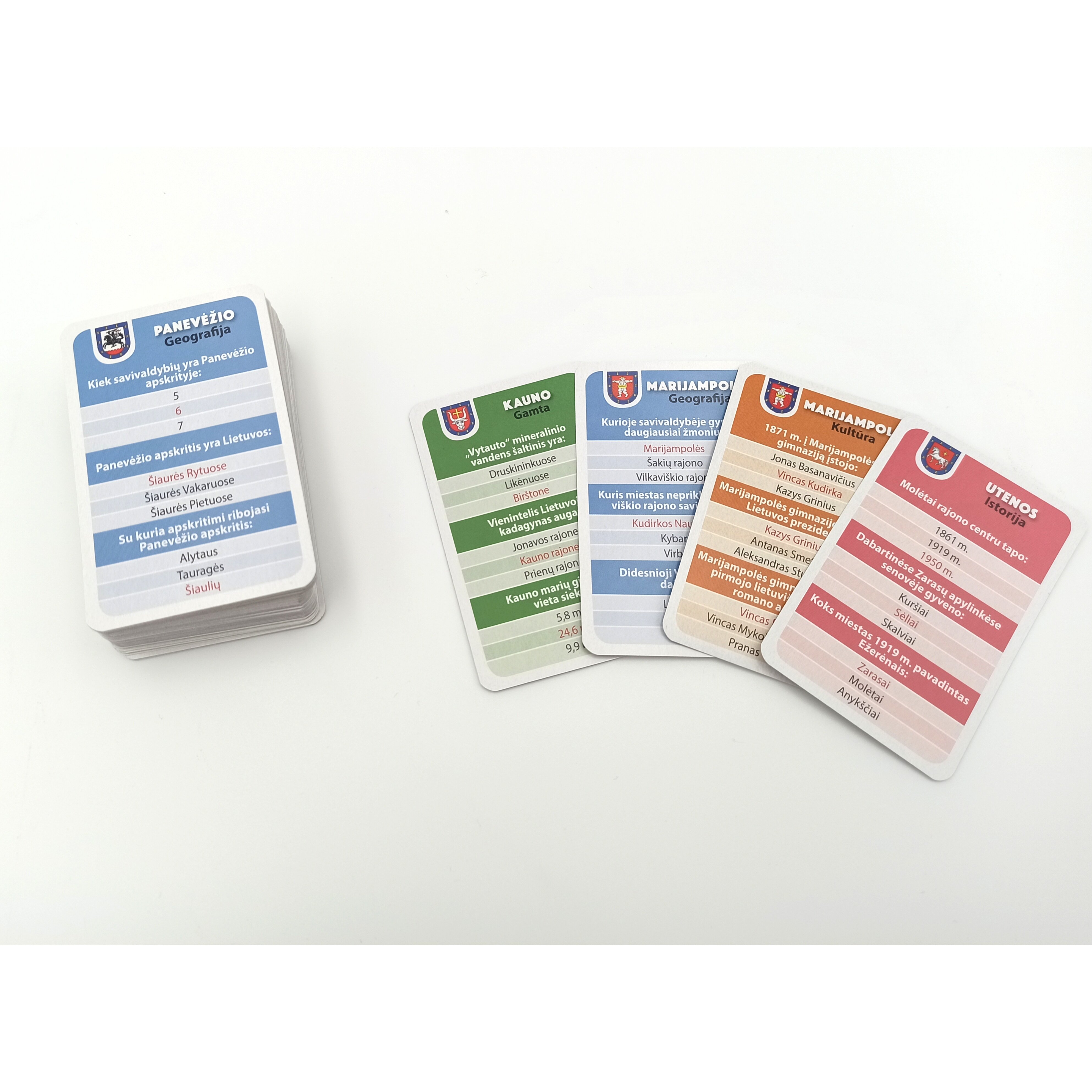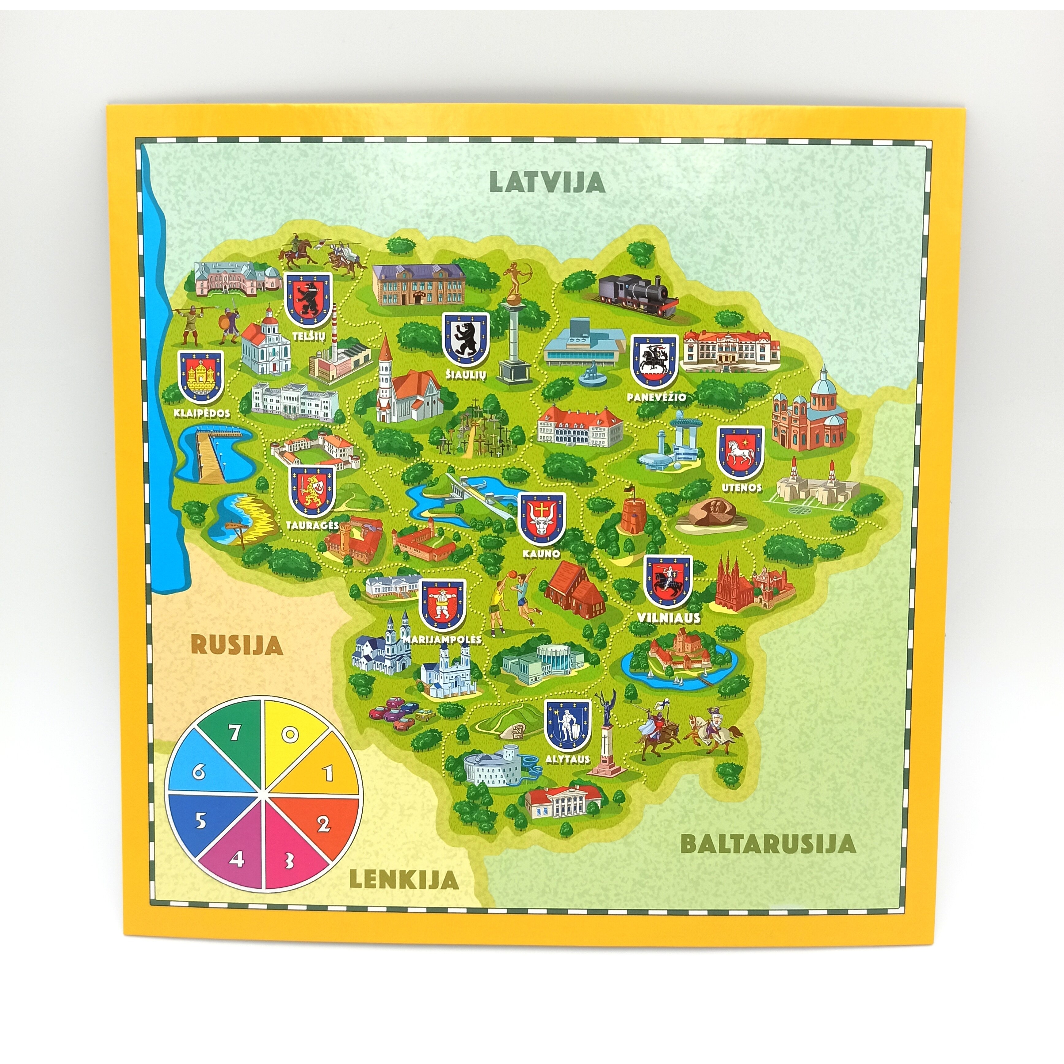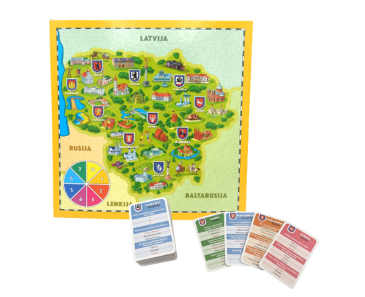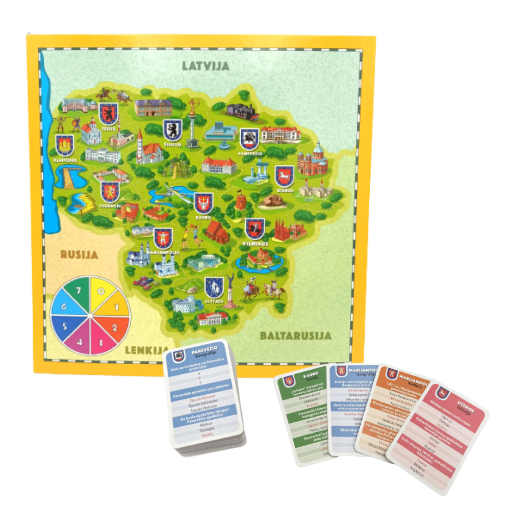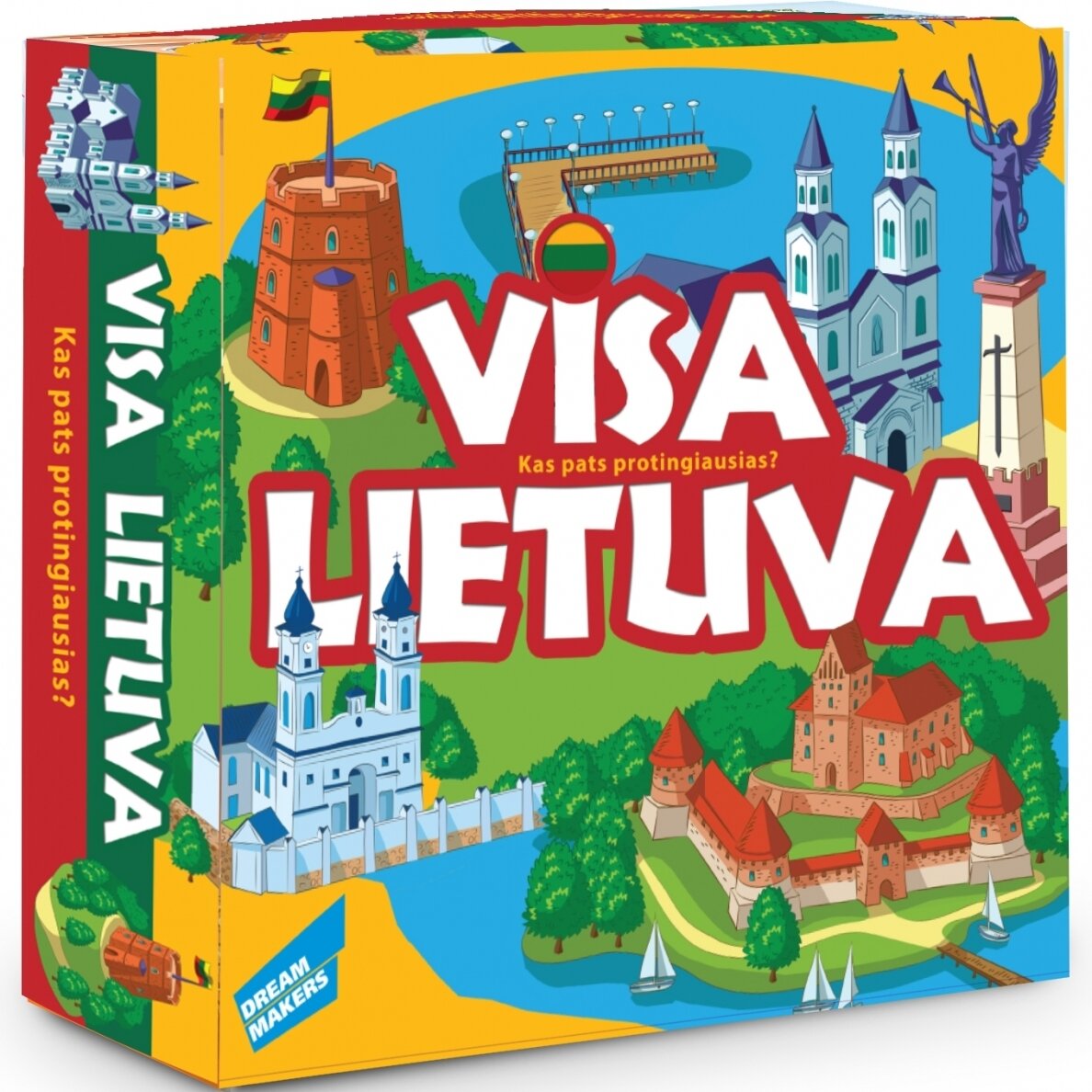 Stalo žaidimas viktorina VISA LIETUVA - žaidimas, kurį žaisdami pasitikrinsite savo žinias, o taip pat sužinosite daug įdomios informacijos apie Lietuvos gyvenimą. VISA LIETUVA žaidimo tikslas - keliaujant po Lietuvos regionus atsakyti į klausimus apie Lietuvos gamtą, kultūrą, lankytinas vietas, geografiją, istoriją. VISA LIETUVA žaidimo žemėlapyje rasite daugiau kaip keturiasdešimt unikalių lankytinų Lietuvos vietų piešinių. Žaidimo rinkinyje yra: žaidimo laukas, 100 klausimų kortelių, 8 žaidimo bokšteliai, žaidimo kubelis, žaidimo taisyklės.