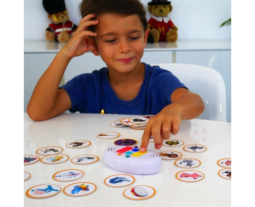 Viduje: Elektrinė dėžutė (120 garsų ir jų atsakymai), 120 žetonų, instrukcija (EN), reikalingi 2 vnt. AAA tipo baterijos, rinkinyje nepridedamos