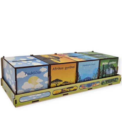Lavinamasis rinkinys iš medžio, kurį sudaro 2 stalo žaidimai: