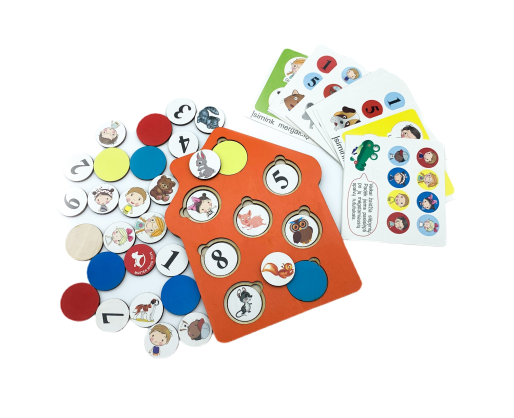 - Žaidimas „Rutuliukai“. Į tuščius namelio langelius sudėkite rutuliukus su skaičiais. Paprašykite, kad vaikas paskaičiuotų, kiek yra rutuliukų su skaičiais. Išsirinkite vieną iš trijų kortelių su spalvotais skaičiais ir pasiūlykite vaikui atlikti užduotį kortelėje: uždengti skaičių tokios pačios spalvos rutuliuku, kaip nupiešta kortelėje. Būtinai pagirkite.