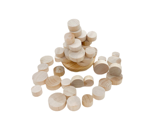 Žaidimą sudaro: 43 mediniai elementai.