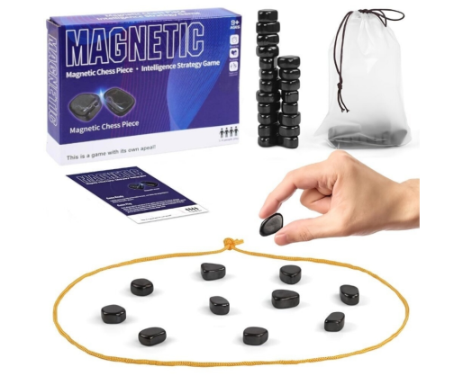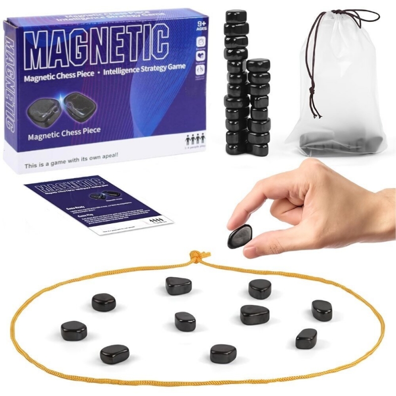 Magnetinis žaidimas, rinkinyje: 30 magnetinių akmenukų, virvelė, maišelis, instrukcija. Žaidimas skirtas 1- 4 žaidėjams.