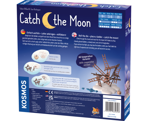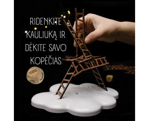 Lipkite kopėčiomis aukštyn ir pasiekite mėnulį! Tereikia kelių sumaniai pastatytų kopėčių, tvirtos rankos ir šiek tiek vaizduotės. Ridenkite kauliuką, statykite kopėčias tokia tvarka, kaip pavaizduota ant kauliuko (kopėčios turi liesti kitas kopėčias, arba kitas dvi kopėčias ir t.t.). Kuo daugiau kopėčių, tuo žaidimas taps labiau nenuspėjamas.