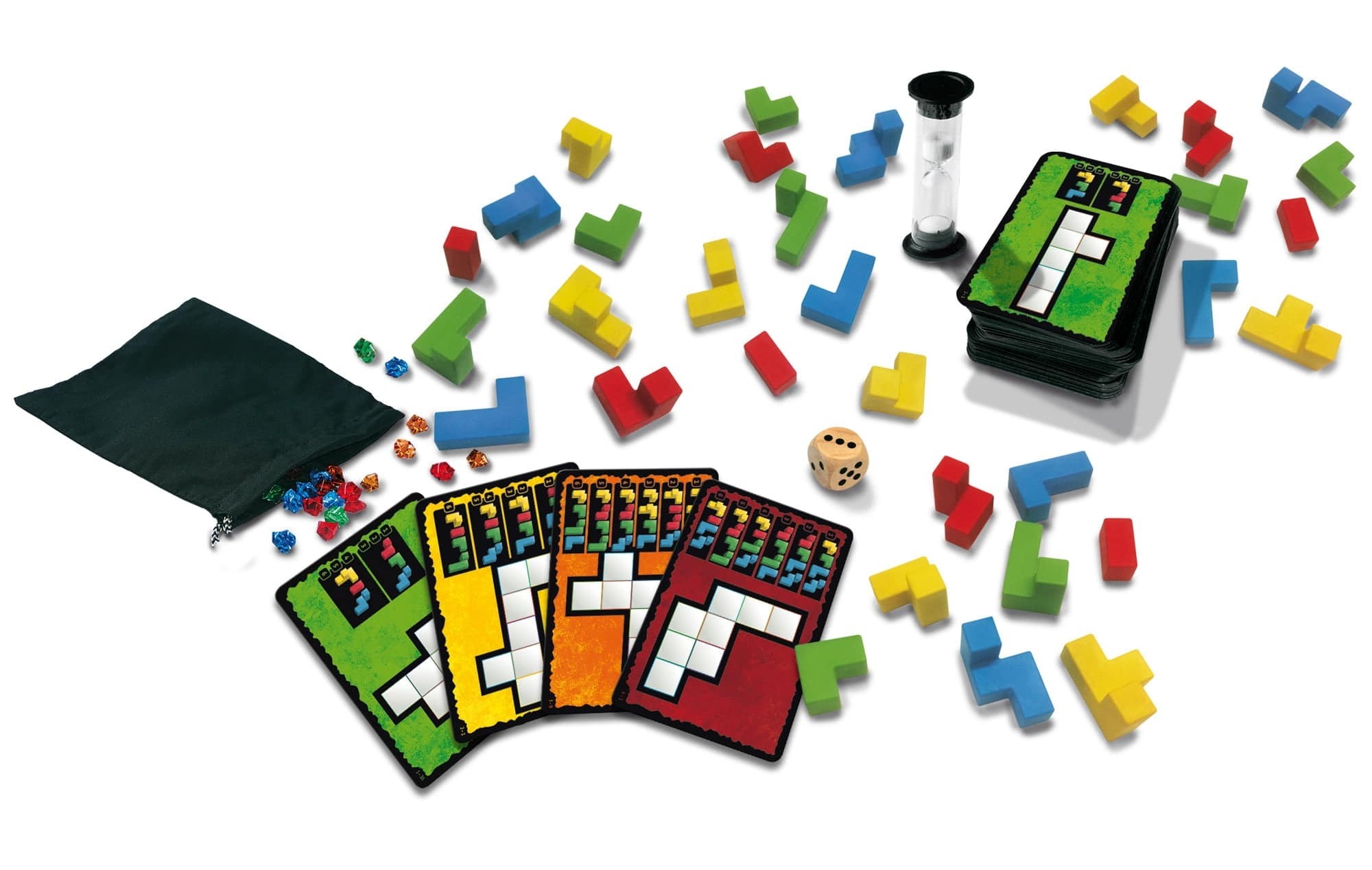 Viduje: 32 žaidimo detalės, 72 dvipusės galvosūkių kortelės (net 671 galvosūkis), 58 plastmasiniai brangakmeniai, maišelis, žaidimo kauliukas, smėlio laikrodukas, instrukcijos (EN kalba).