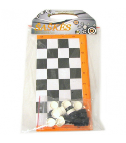 Žaidimų rinkinys praktiškoje medinėje dėžutėje. Yra keturi skirtingi žaidimai: domino, mikado, ludo ir kortų kaladė.