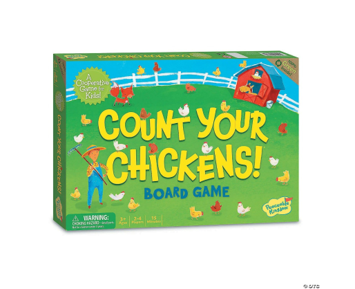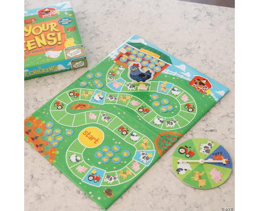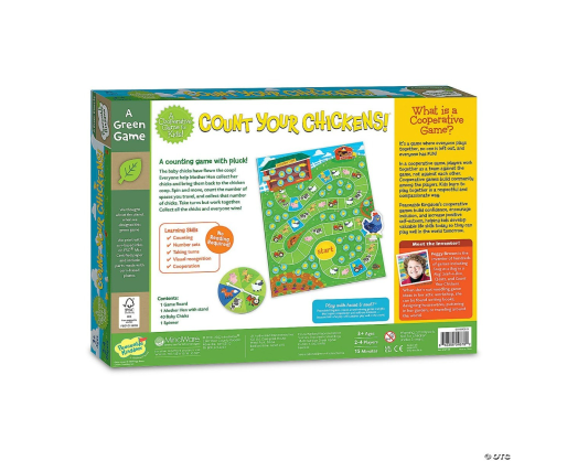 Mažyliai viščiukai išskrido iš vištidės. Žaidėjai kviečiami padėti mamai vištai surinkti savo vaikučius ir grąžinti juos atgal į vištidę. Pasukite ir judėkite, suskaičiuokite tarpelių skaičių ir surinkite tokį kiekį viščiukų. Darykite savo ėjimus, tačiau dirbkite kartu. Jei surinksite visus viščiukus - visi laimės! „Count Your Chickens” pašalina stresą, įgalina mažuosius Ateities Herojus mokytis ir moko vaikus, jog žaisti kartu gali būti smagu! Žaisdami vaikai taip pat praktikuojasi skaičiuoti ir bendradarbiauti.Viduje: 1 žaidimo lenta, 1 mama višta su stoveliu, 40 mažylių viščiukų žymekliai, 1 suktukas ir instrukcijos.