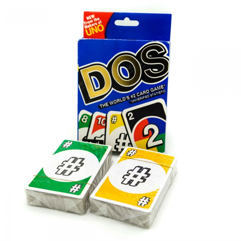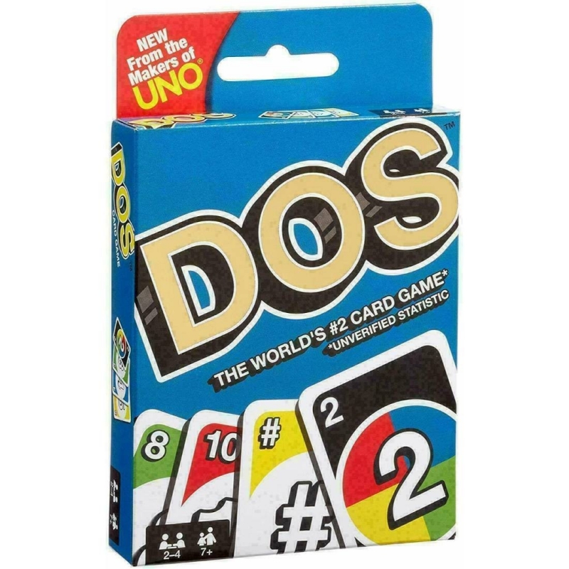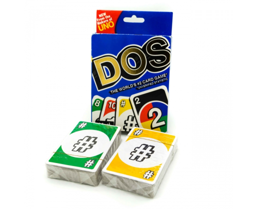 UNO turi naują geriausią draugą DOS! Šiame žaidime, skirtingai nei įprastame UNO, du yra svarbiau nei vienas, o skaičiai yra karaliai! Juos galima sumuoti, kombinuoti, o vieno ėjimo metu galima dėti net kelias kortas. Kaip ir įprastame UNO, žaidėjai siekia kuo greičiau atsikratyti visų rankoje turimų kortų, tačiau kai jos dvi lieka rankoje - nepamiršk sušukti DOS (reiškia du)! Kitaip laukia bauda. Žaidėjas gauna taškus už kitų žaidėjų korteles, o tas, kuris pirmas surenka 200 taškų - laimi žaidimą.