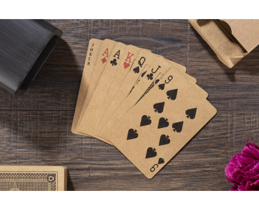 Klasikinės kortos puikiai tinka visų tipų kortų žaidimams ir pramogoms. Kortų skaičius: 54 vnt. Pagaminta iš rudos spalvos perdirbto popieriaus.