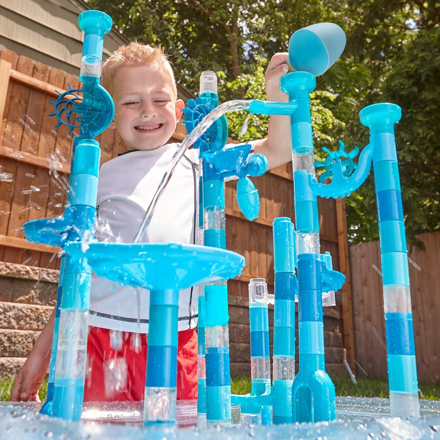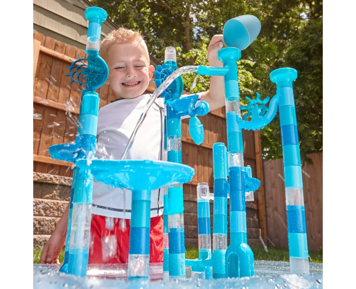 Nuo vertikalių lašų ir sūkurių iki centrifugų ir versmių, vaikai gali sušlapti savo kojas žaisdami ir tuo pačiu mokydamiesi pagrindinių fizikos principų. Plaukiojantys rutuliukai stebuklingai išsilaiko vandens paviršiuje, o vandeniui atsparus kilimėlis leidžia žaidimo vietą susitvarkyti itin greitai ir paprastai. Iš inžinerinių žaislų ir statymo rinkinių, žaidimą "Vandens labirintas" kitiems žaidimams pralenkti iš tiesų sudėtinga. Šis įtraukiantis žaidimas moko logikos, kūrybiško žaidimo, fizikos pagrindų, pagrindinių motorinių ir problemų sprendimo įgūdžių bei suteikia galimybę lavinti STEM gebėjimus žaidžiant. "Vandens labirintas" leis išsiųsti kamuoliukus į besisukančią, vingiuojančią, šokinėjančią kelionę, kurios dar neteko matyti anksčiau. Įvairūs latakai, suktukai ir kitos detalės leidžia žaisti valandų valandas kuriant tikrą inžinerinį stebuklą.Viduje: 103 vandens labirinto detalės, 20 plūduriuojančių kamuoliukų ir neperšlampamas žaidimo kilimėlis
