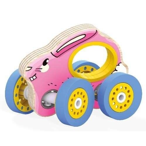 Važiuodamas triušiukas svyruoja į abi puses, kas yra labai patogu vaikams žaidžiant.