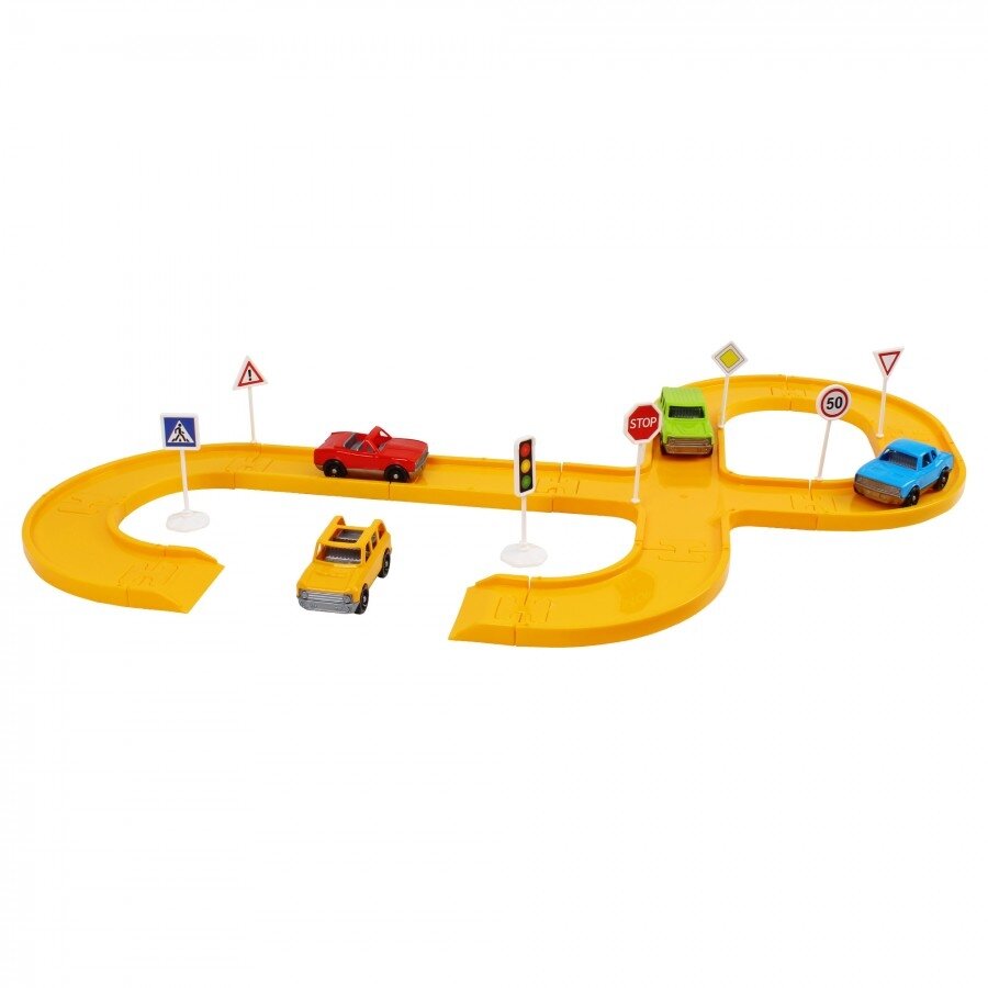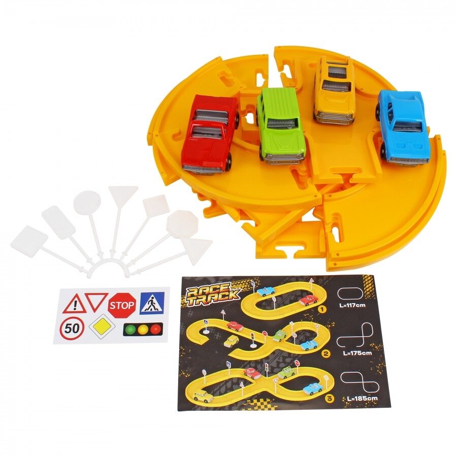 Rinkinyje rasite keturis skirtingus automobilius: stilingą kabrioletą, galingą visureigį, sportišką kupė ir safario automobilį. Mažieji vairuotojai galės kurti savo trasas, išbandyti įvairius maršrutus ir net mokytis kelių eismo taisyklių – tam pravers pridedami kelio ženklai ir lipdukai. Tai smagus ir naudingas būdas pažinti kelių pasaulį bei ugdyti atsakingą elgesį.