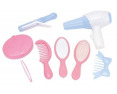 Pilna komplektacija: plaukų džiovintuvas, žnyplės, 2 šukos, 2 šepečiai, veidrodėlis, pudros dėžutė, pincetas.