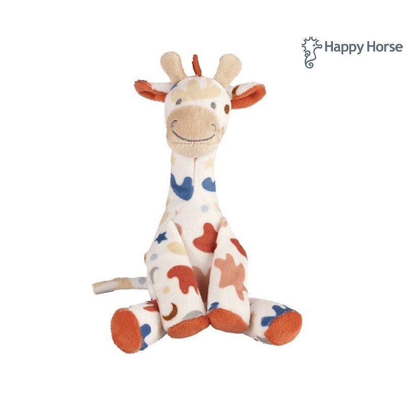 Žirafa su šviesiomis ir tamsiomis dėmėmis prislopintuose retro atspalviuose. Šis pliušinis žaisliukas yra modernus, mielas ir tikras apkabinimų čempionas.