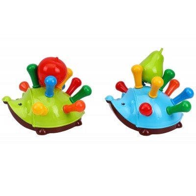 Pilna komplektacija: ežiukas, 10 adatų, obuolys, kriaušė. Ežiukas gali būti mėlynas arba žalias.